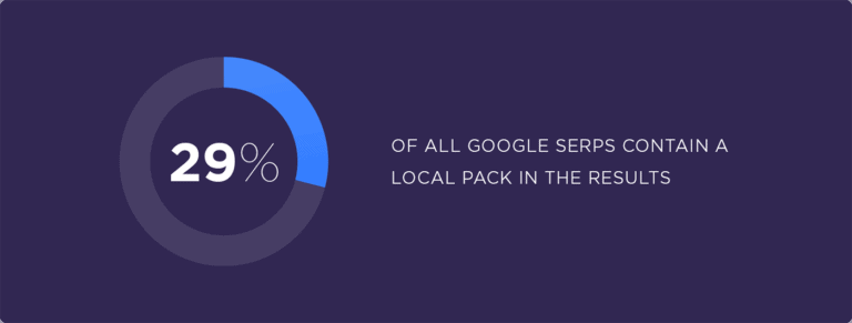 29% of all Google SERPs contain a local pack in the results (RankRanger).